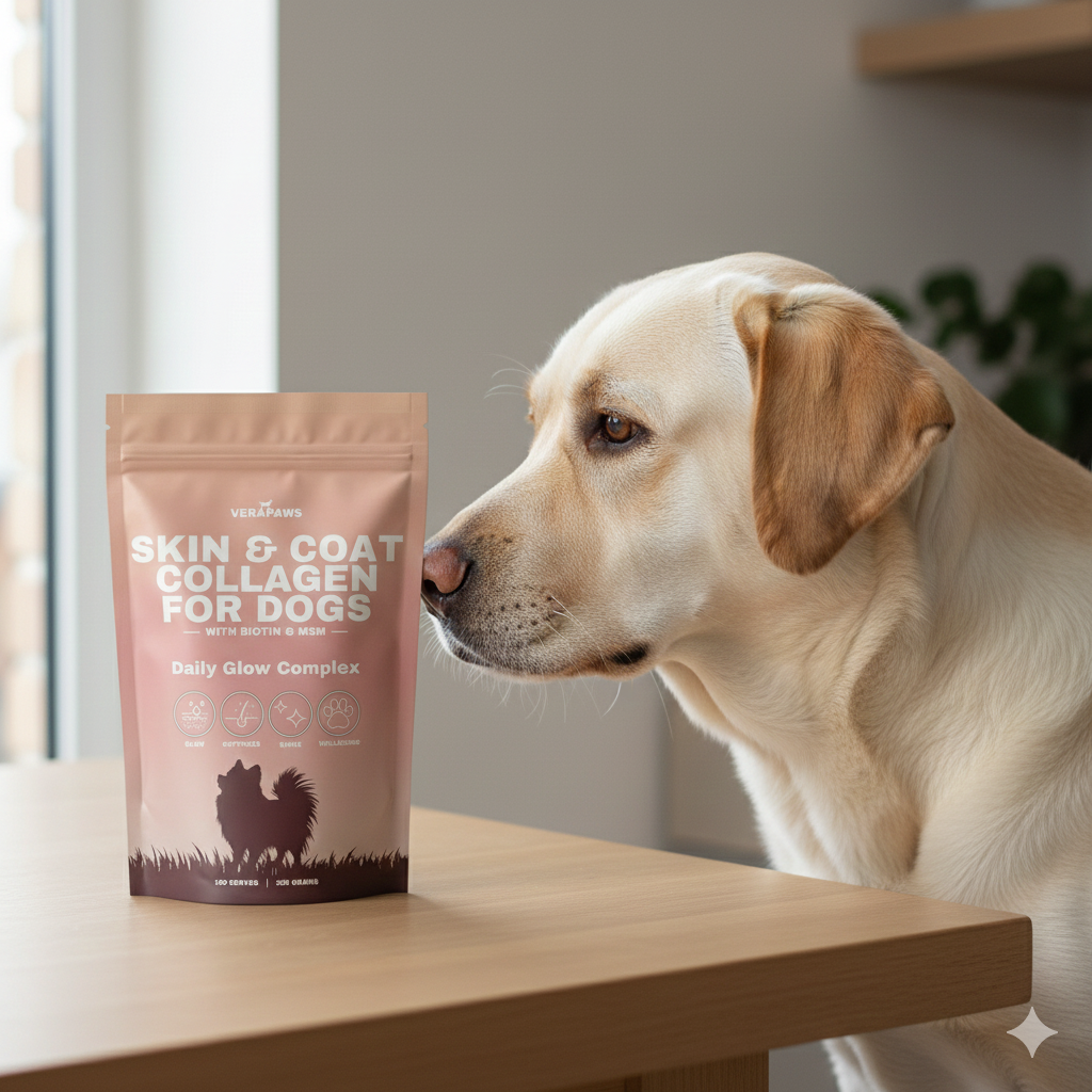 Verapaws Skin & Coat Collagen For Dogs is designed to fit within this evidence-informed approach: providing collagen, MSM and biotin as daily nutritional support for healthy skin and coat. It is not a medicine and does not replace veterinary treatment, but it can be one part of a broader skin and coat care plan developed with your vet.